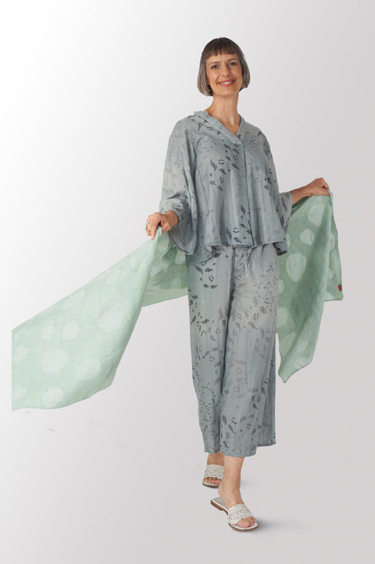 CUT THROUGH DOT AND HOLES KANTHA SHAWL MEDIUM - cd2802-ivy -