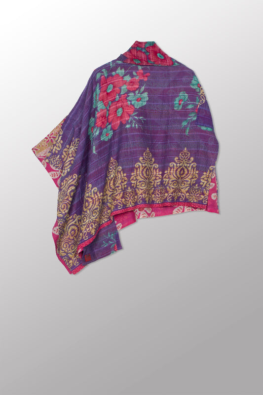 VINTAGE SILK KANTHA LONG CAPE - sv2841-mlt -