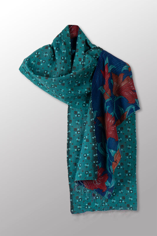 VINTAGE SILK GEORGETTE COTTON KANTHA SCARF SHORT - gc2805-tel -