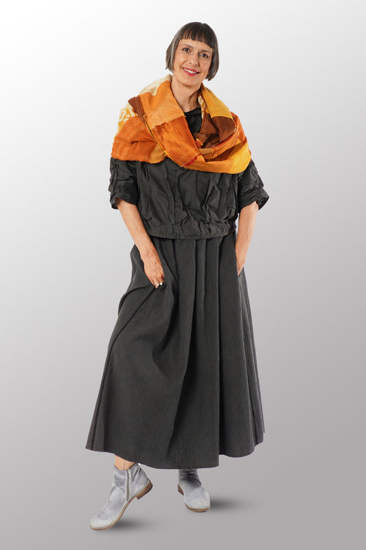 FRAYED PATCH KANTHA COWL NECK LONG CAPE - fi4842-gry -