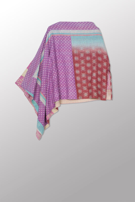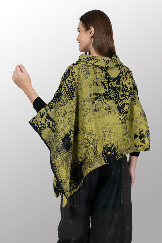 VINTAGE COTTON KANTHA COWL NECK LONG CAPE - cv2842-0001a -