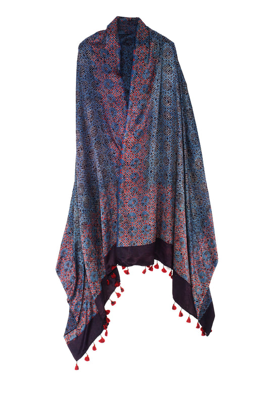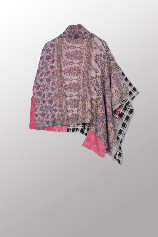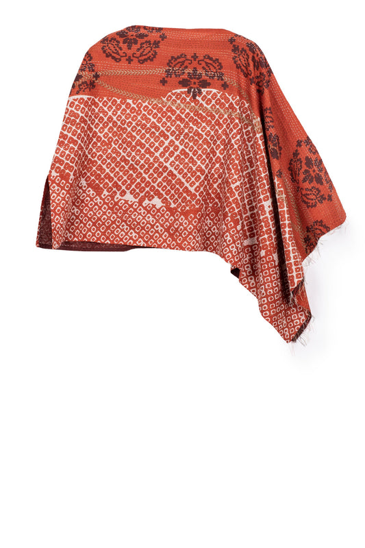 KIMONO PRINT KANTHA COWL NECK CAPE - kp2807-red -
