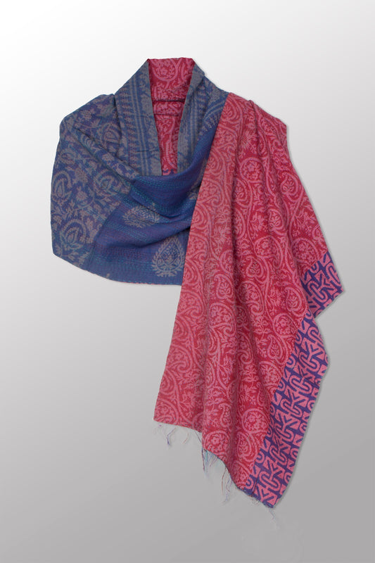 KIMONO PRINT KANTHA SHAWL LARGE - kp2803-red -