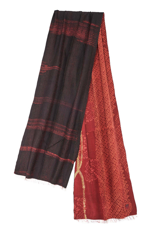 KIMONO PRINT KANTHA SCARF STANDARD - kp2801-red -