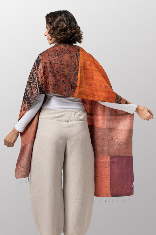 VINTAGE SILK PATCH KANTHA SCARF STANDARD - vp2801-cor -
