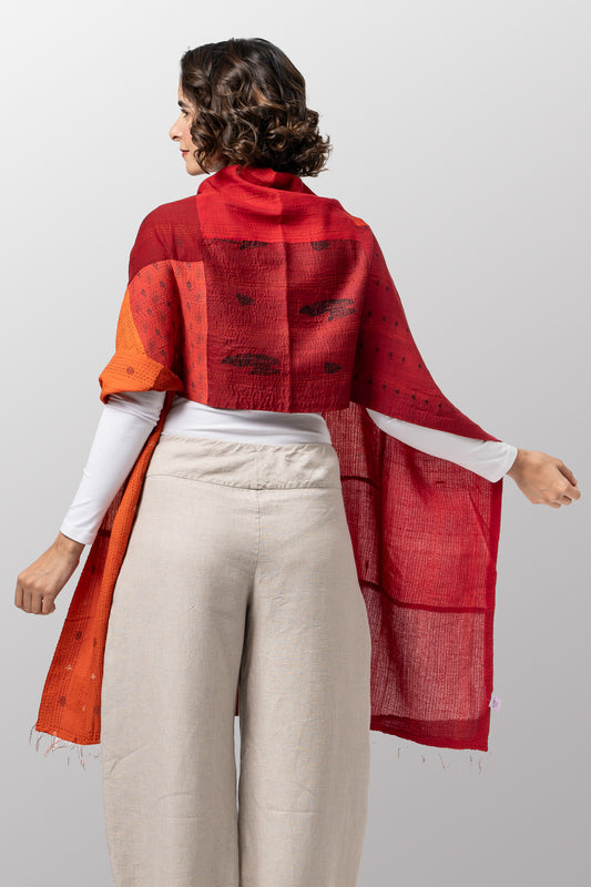 MOSAIC TILE PATCH KANTHA SQUARE SCARF X-LARGE - mt1812-red -