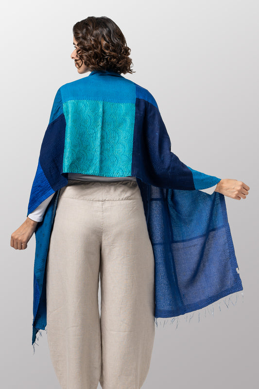 COTTON SILK SW PATCH KANTHA SHAWL LARGE - ws2803-tuq -