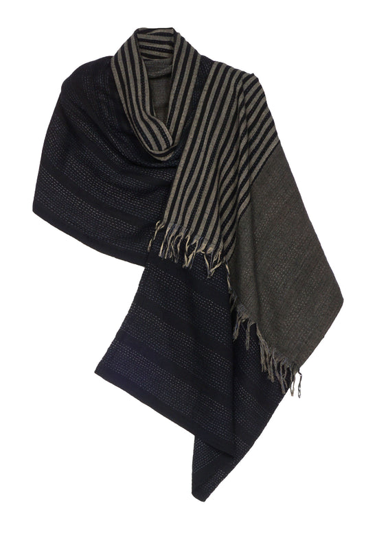 WAVY STRIPE KANTHA SHAWL LARGE - wv2803-ivy -
