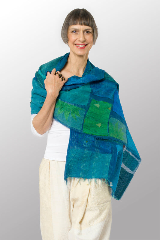 TONAL TILE PATCH KANTHA SHAWL MEDIUM - tt2802-tel -