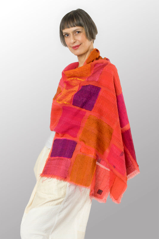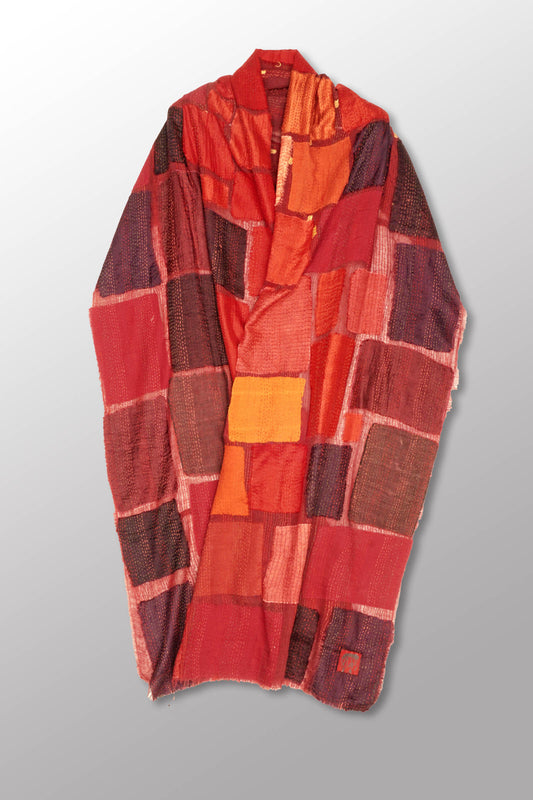 TONAL TILE PATCH KANTHA SHAWL MEDIUM - tt2802-red -