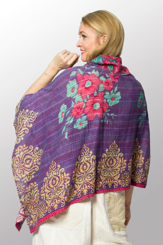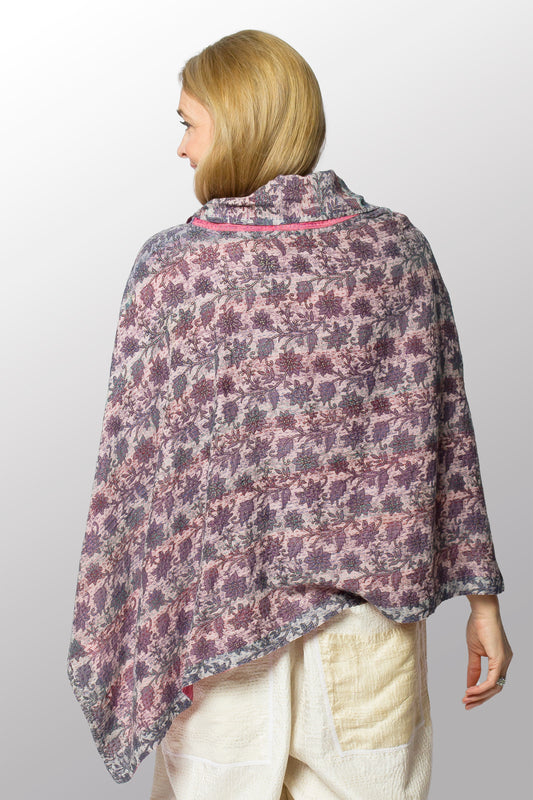 VINTAGE COTTON KANTHA COWL NECK LONG CAPE - cv4842-mlt -
