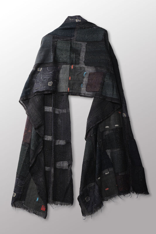 TONAL TILE PATCH KANTHA SHAWL MEDIUM - tt2802-blk -