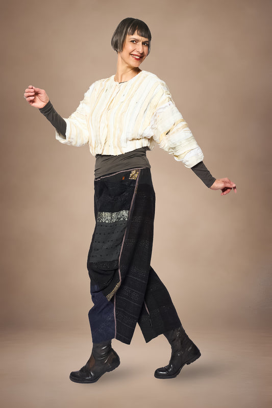 WAVY STRIPE KANTHA DOLMAN SLV. JACKET - wv2j110-ivy -
