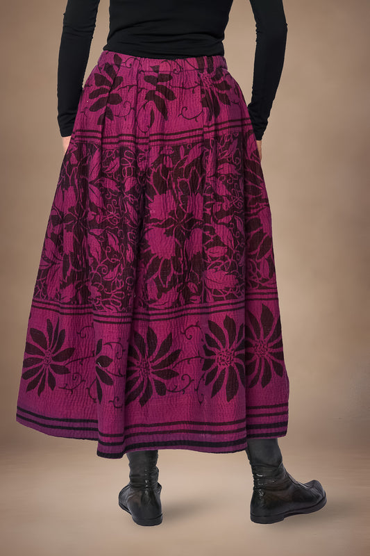 AMETHYST COTTON SILK KANTHA DOUBLE COLLAR PONCHO - oc4323-prp -