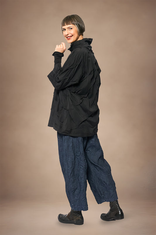 POLISHED COTTON WAVY TUCK PULLOVER - wl1552-blk -