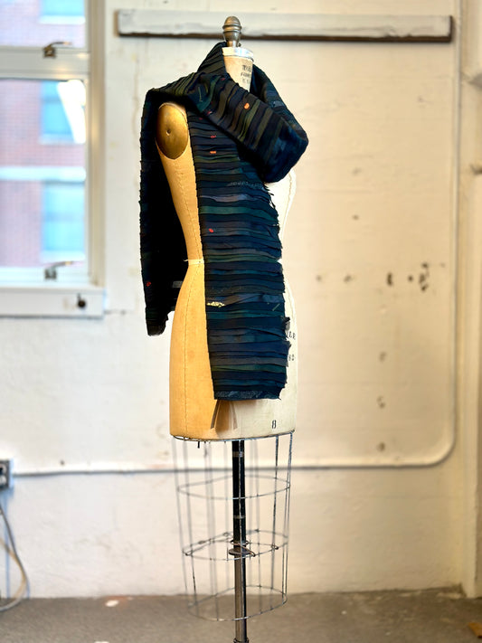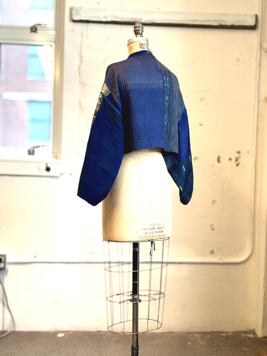 TIE DYE VINTAGE SILK KANTHA PUFF SLV. SHRUG - st-sv2062-blk -