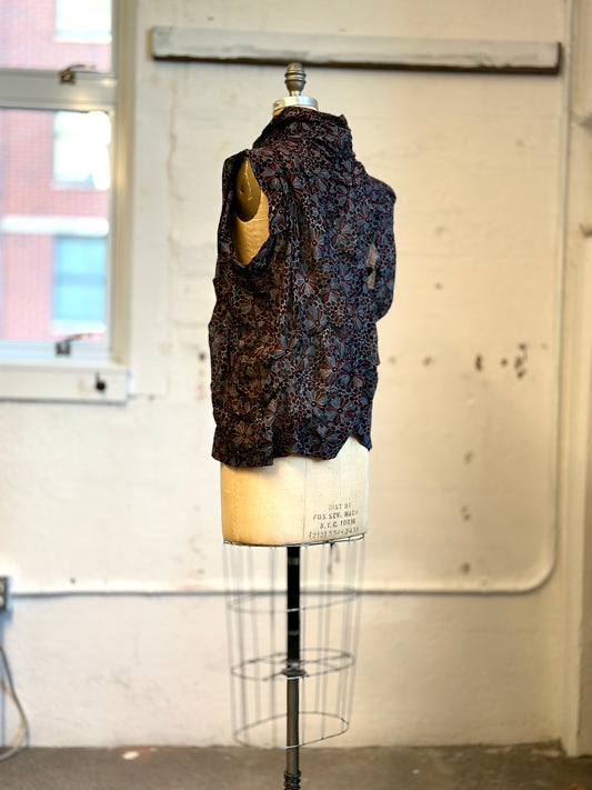 KIMONO PRINT KANTHA COWL NECK CAPE - kp2807-blk -
