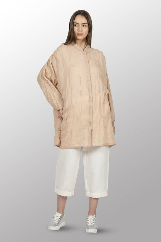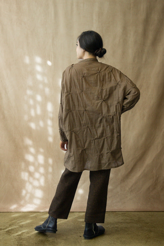 GAUZE SHIBORI GARMENT KANTHA BAND COLLAR OVERSIZED SHIRT - bl-gg2587-ntl -
