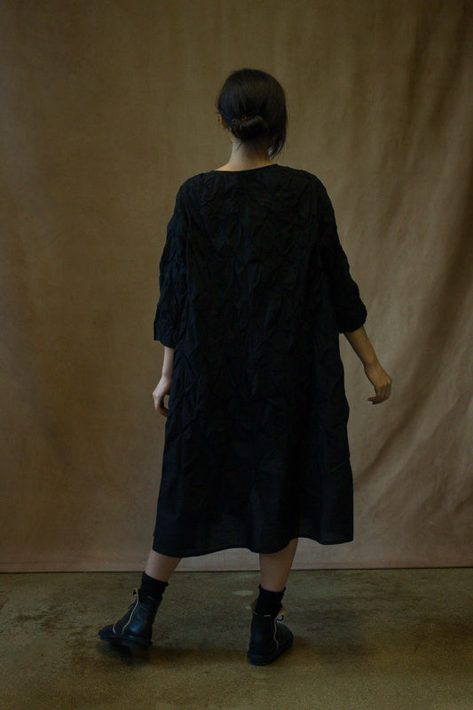 POLISHED COTTON WAVY TUCK A-LINE DRESS - bl-wl1453-blk -