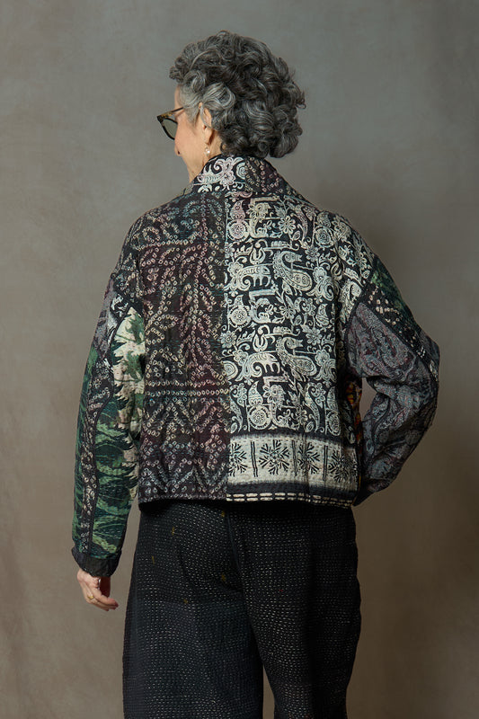 MONE SHIBORI TIE DYE KANTHA CROPPED BASIC JACKET - ms4096-tel -