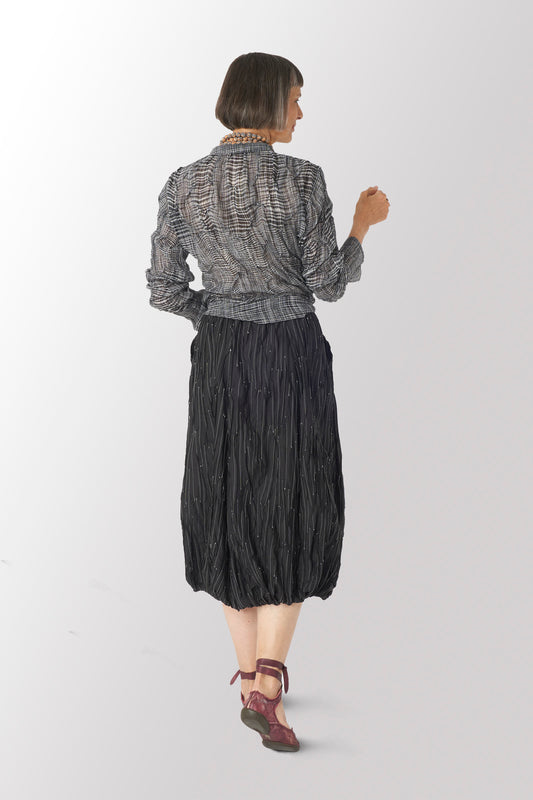 POLISHED COTTON RANDOM TUCK VOILE PUMPKIN SKIRT - rc1650-blk -