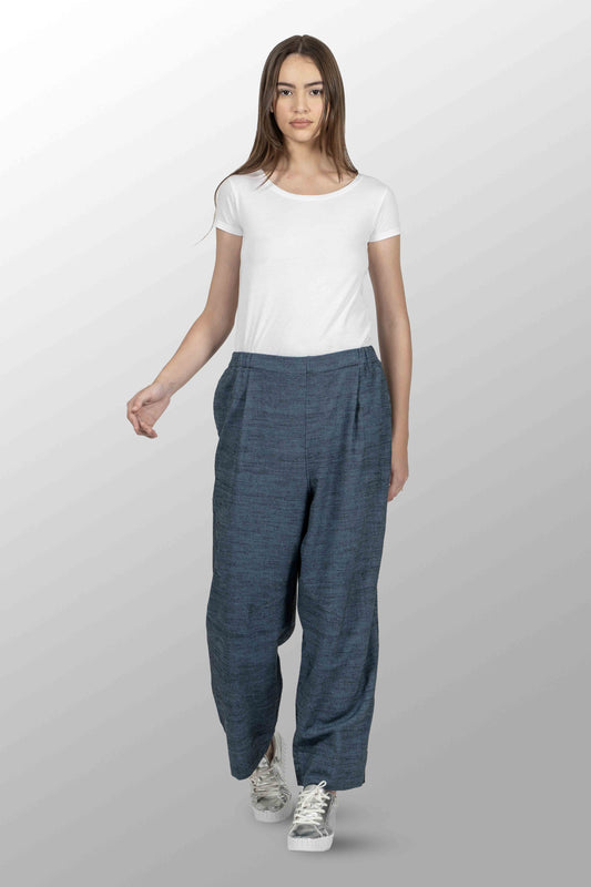 DYED COTTON SILK HEAVY VOILE WAVY TUCKED PANTS - dh1635-blu -