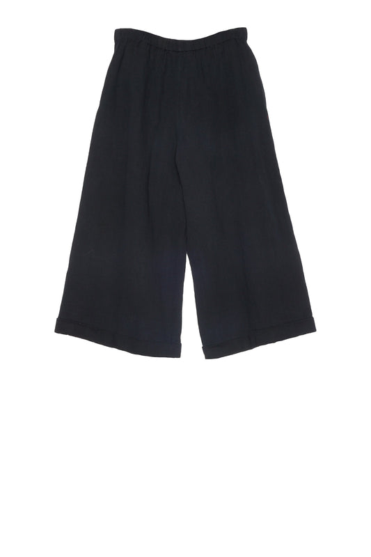 DYED COTTON LINEN TWILL DOUBLE CUFF WIDE LEG PANTS - tl1636-blk -