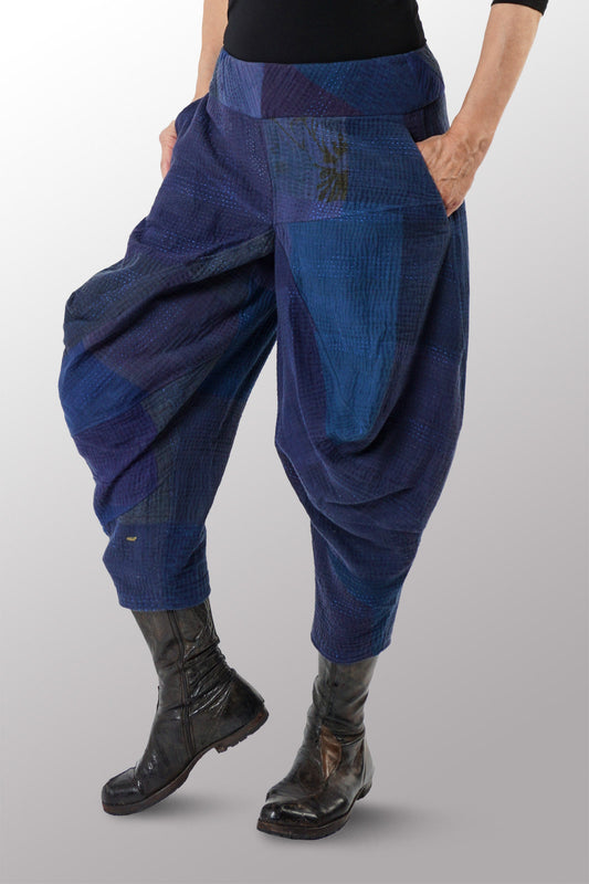 OMBRE PATCHED KANTHA NEW LANTERN PANTS - op4651-nvy -