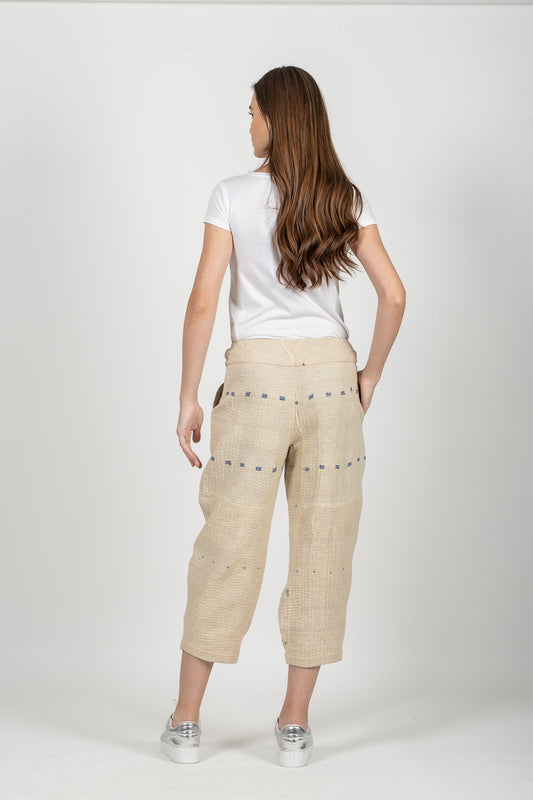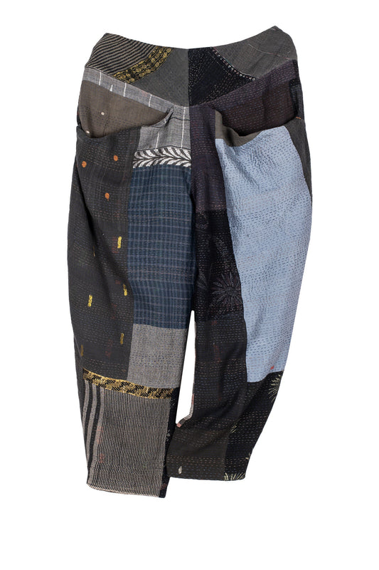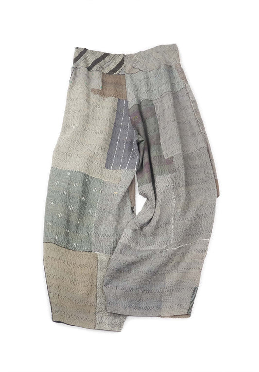 FRAYED PATCH KANTHA KNEE TUCKED PANTS - fi2625-ntl -