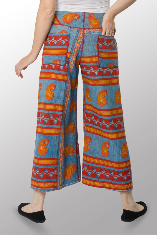 VINTAGE COTTON KANTHA WIDE LEG PANTS - cv2623-0004m -
