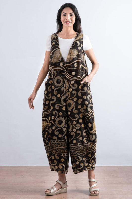 ORGANIC LEAVES KANTHA BAGGY PANTS - ol2642-blk -