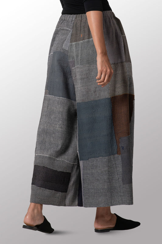 COTTON SILK SW PATCH KANTHA YAMAHA PANTS - ws2632-gry -