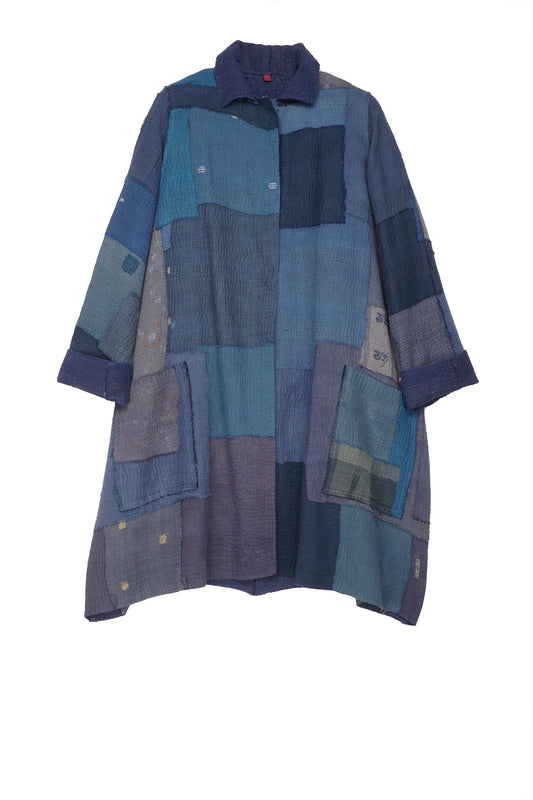 QUILTED OVERDYE COTTON KANTHA NEW OVERSIZED COAT - oq5342-cblu004a -