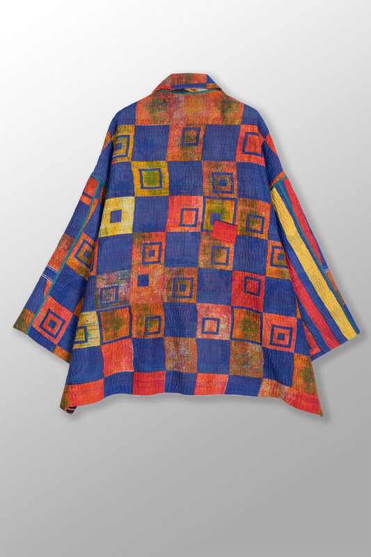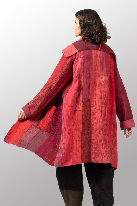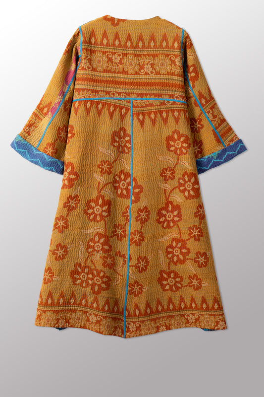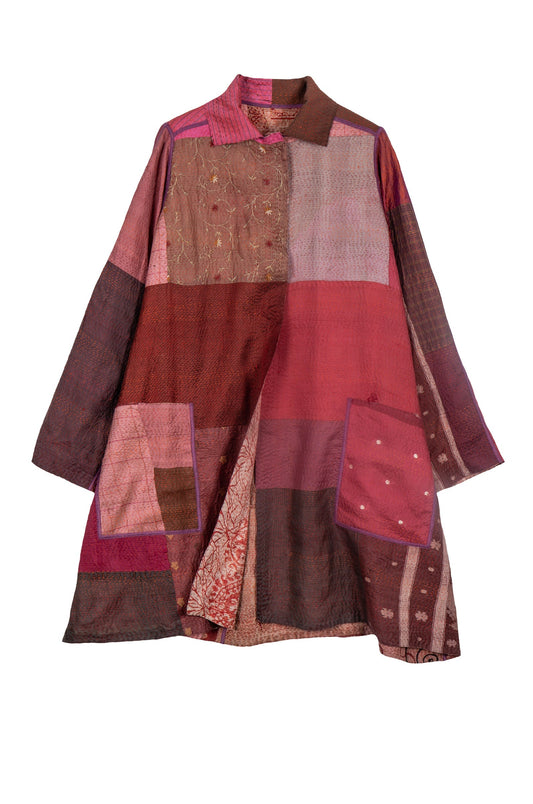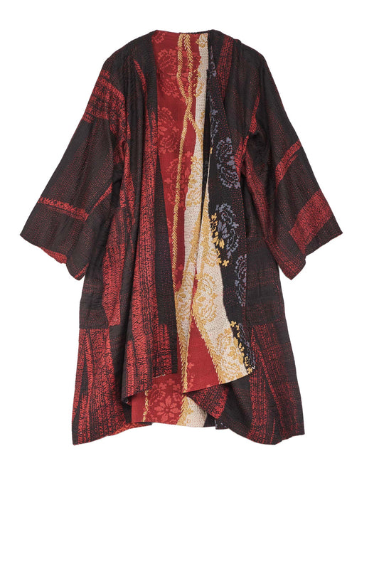 VINTAGE SILK PATCH KANTHA A-LINE DUSTER - vp2311-cor -