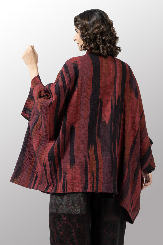 IKAT STRIPE KANTHA DOUBLE COLLAR PONCHO - is4323-DRD -