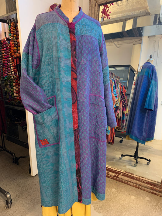 VINTAGE COTTON KANTHA A-LINE DUSTER - cv4311-0077a -