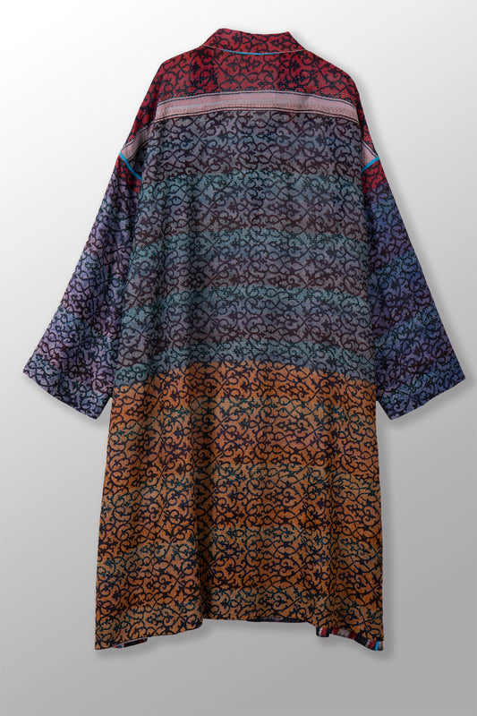 VINTAGE SILK KANTHA KIMONO MAXI - sv2318-0012a -