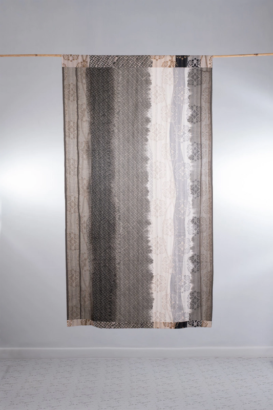 Vintage Fray Patch & Ombre Kantha Curtain -Monotone -