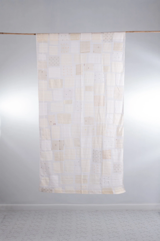 Tonal Tile Patch Kantha Curtain -White -