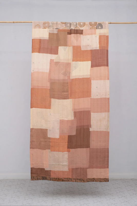 Vintage Fray Patch & Ombre Kantha Curtain -Rose Water -