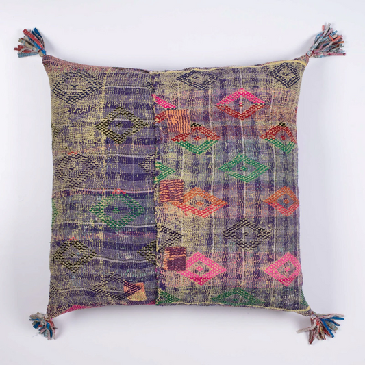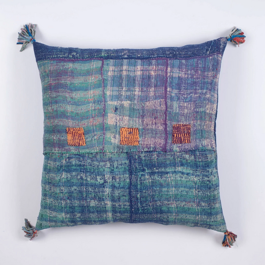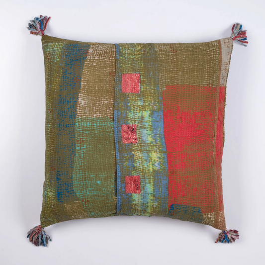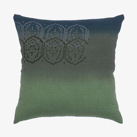 Vintage Fray Patch & Ombre Kantha Pillow Sham -Avocado -