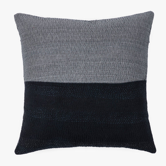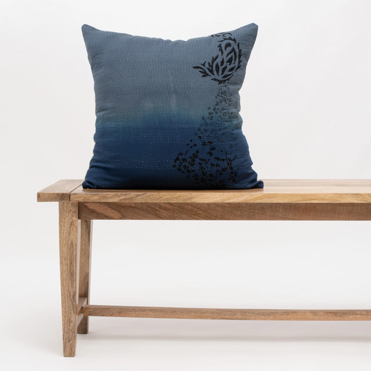 Vintage Fray Patch & Ombre Kantha Pillow Sham -Indigo -