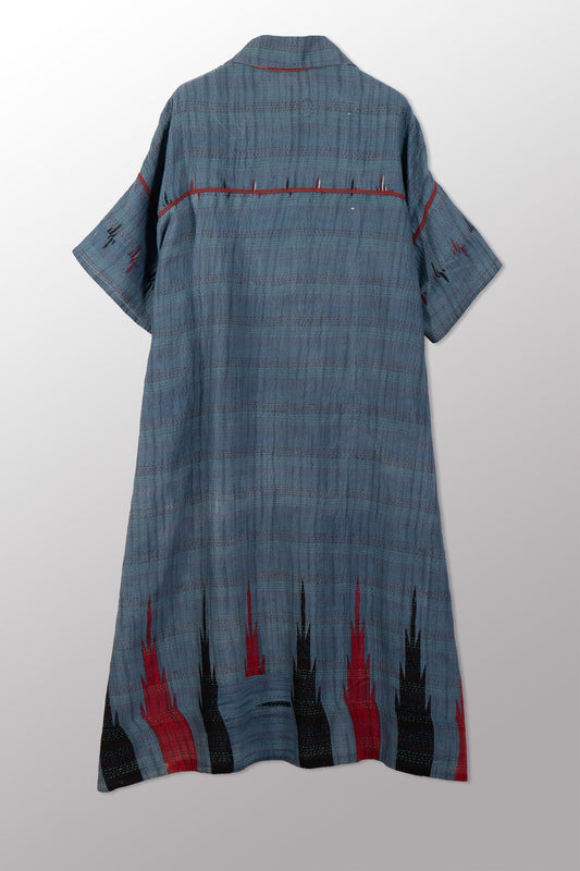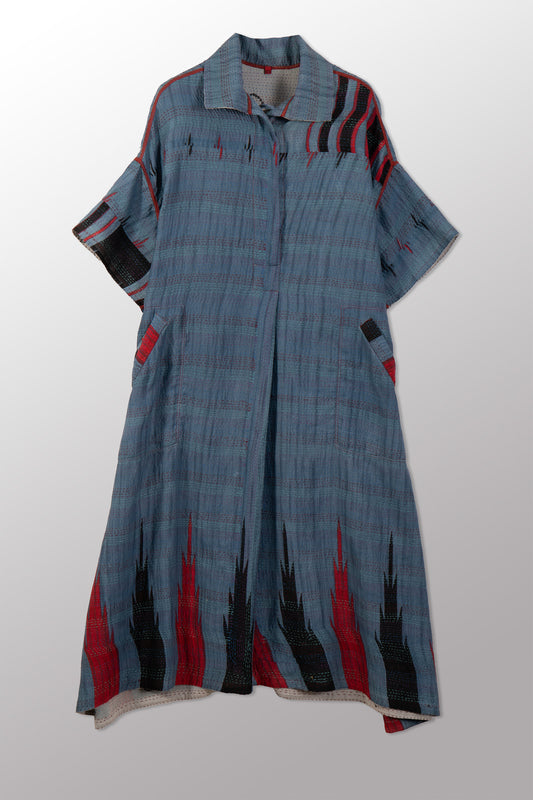 VINTAGE COTTON KANTHA HALF SLV. SHIRT DRESS - cv2429-0004a -