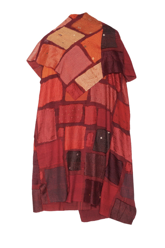 TONAL TILE PATCH KANTHA COWL NECK DRESS - tt2416-red -