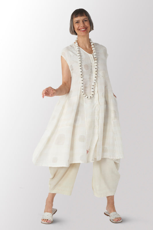 VINTAGE COTTON & NEW VOILE KANTHA WING COLLAR DRESS - cn2454-0002a -