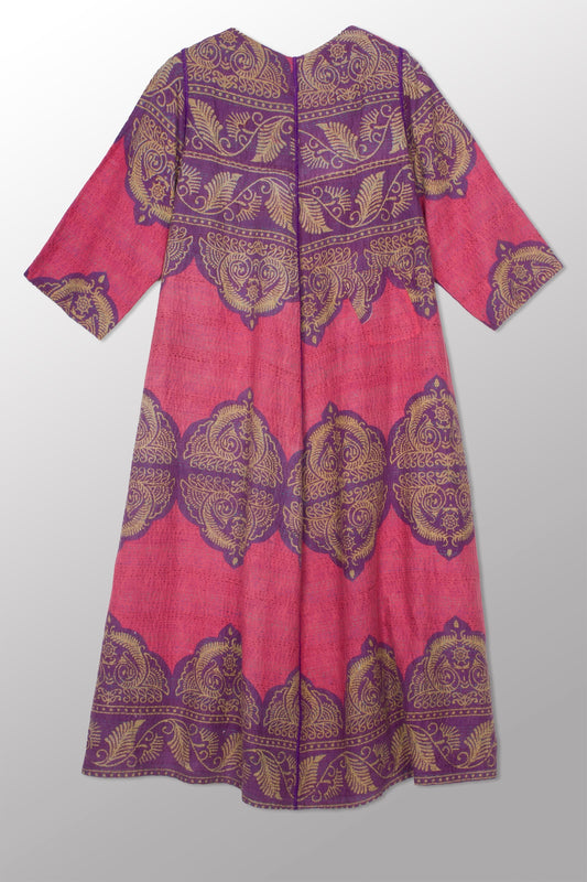COTTON SILK SW PATCH OMBRE KANTHA TENT DRESS - ws2413-tel -