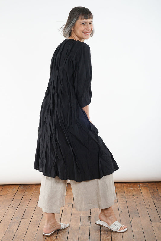 DYED COTTON SILK VOILE WAVY TUCK CROPPED SLV. DRESS - dc1434-blk -