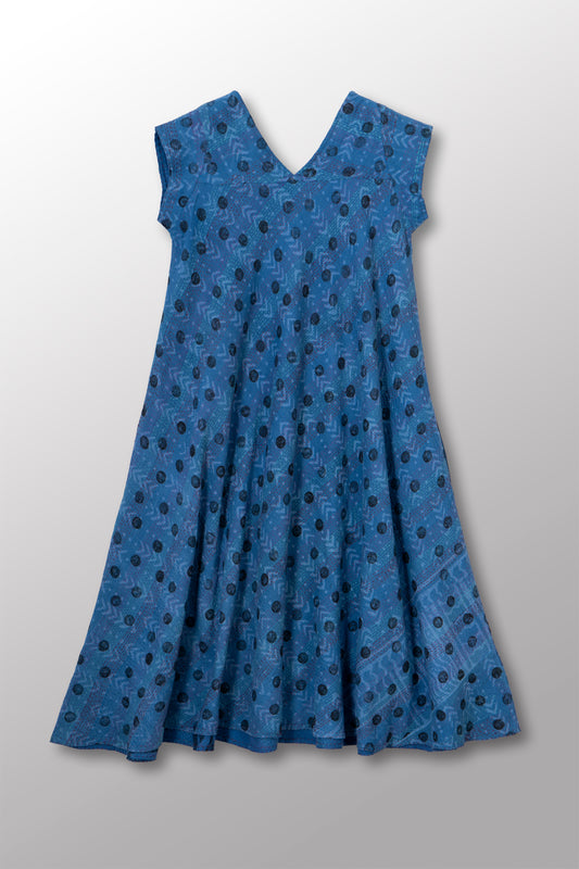 OVERDYED COTTON PAISLEY KANTHA PONCHO DRESS - ov-cp2443-blu -