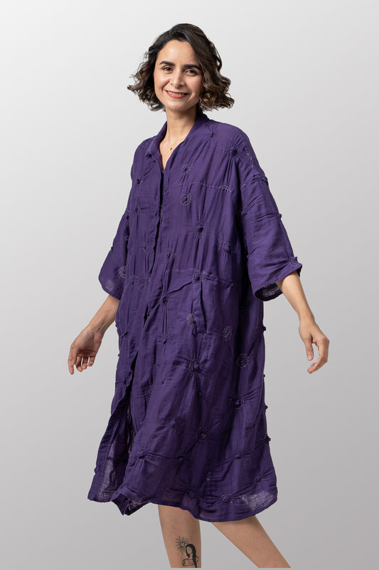 SPIRAL GARMENT KANTHA 3/4 SLV. SHIRT DRESS - sl2464-prp -