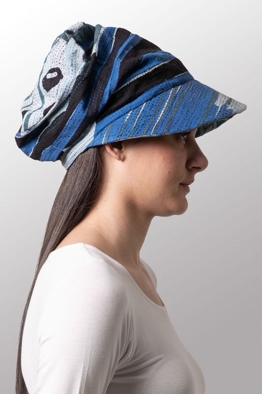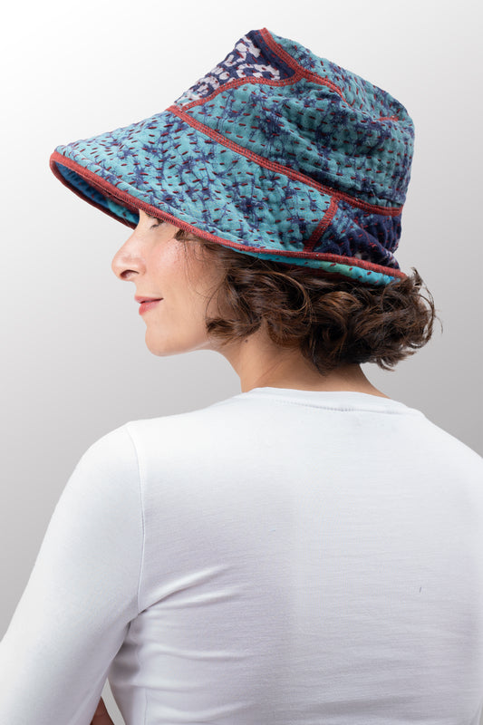 LAKESIDE PRINT KANTHA CASKET HAT BY KYOKO MURAYAMA - lp2895-blu -